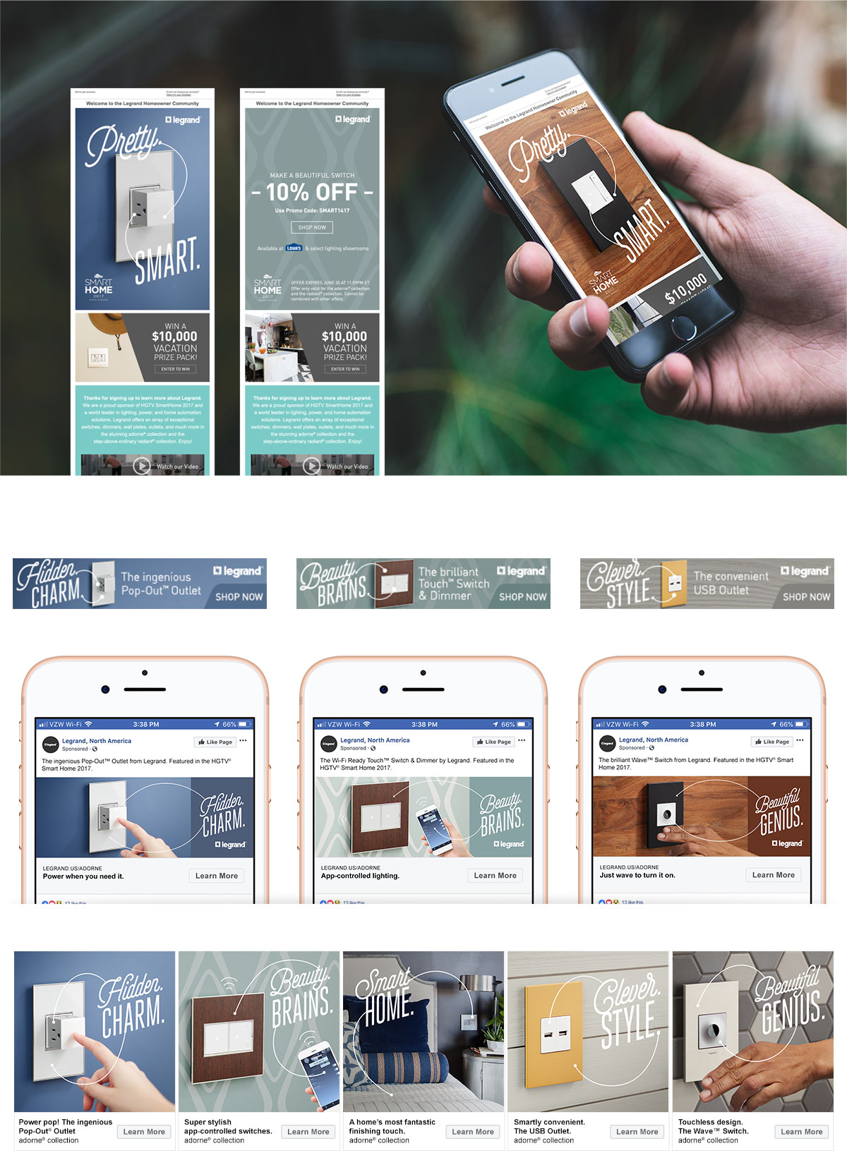 Legrand is one of the world's largest players in all things lighting and electrical. Through our Gravity Alliance, Grey Matter has helped Legrand find its brand voice for a sexy new line of residential switches, outlets, wireless controls and more called adorneā¢. So far, we've helped roll out this new line to the US market with consumer print, digital banners, collateral, and video.