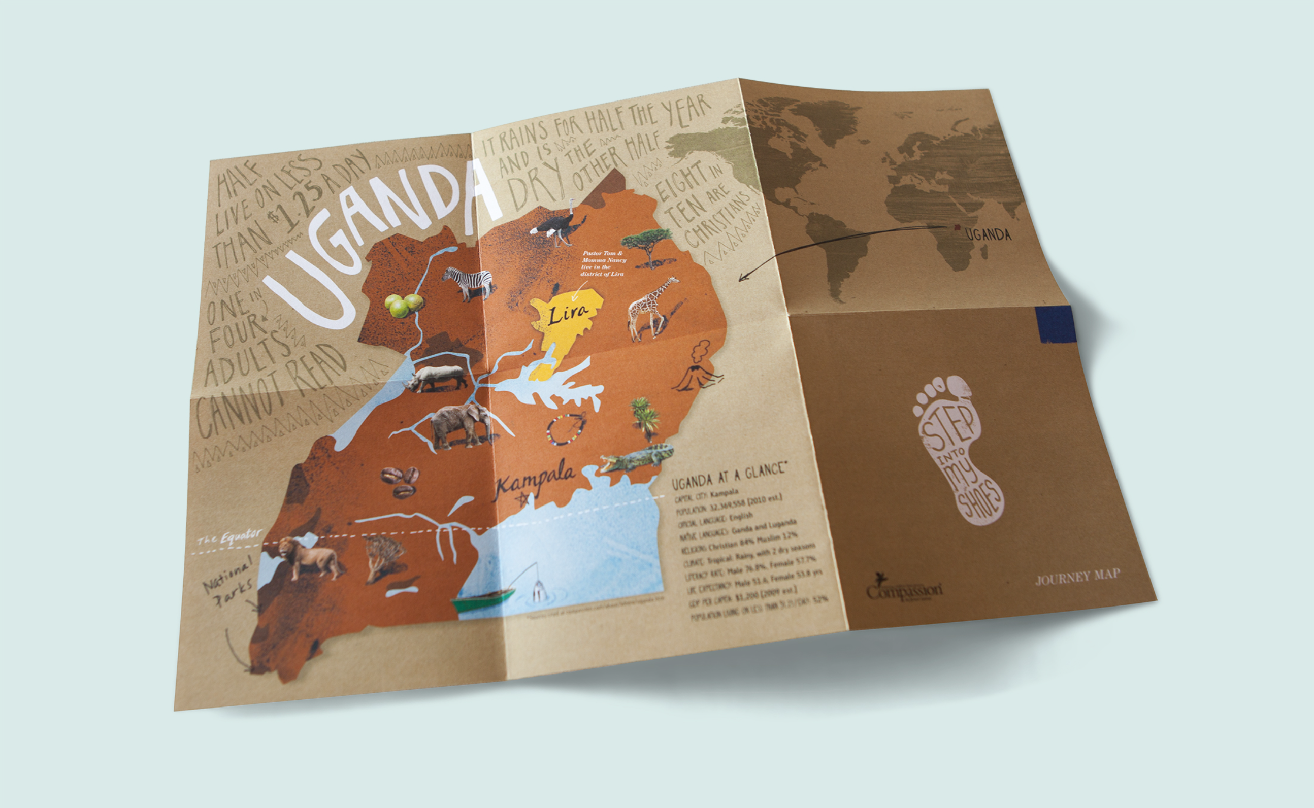 Grey Matter Group enjoyed a 10-year relationship with Compassion International, collaborating on everything from graphic design to curriculum and video production. One of our favorite projects was the Church/Family Curriculum, Step Into My Shoes — a program designed to introduce those of us in the West to the realities of living in poverty in the larger world. GMG was on the ground in Uganda shooting photography and video and directing the creative approach for the launch. We executed on a long list of deliverables including an interactive VR booth experience. The Step Into My Shoes initiative was widely praised by the churches that used it and we heard many stories of people who were impacted by the experience.