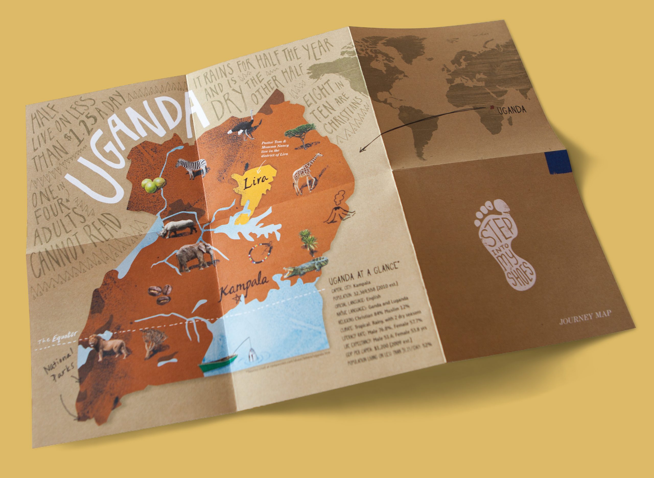 Step Into My Shoes is a branded church curriculum experience that Grey Matter Group helped develop to give families in the West a deeper understanding of life in extreme poverty by inviting them to step into the shoes of others. The curriculum featured interactive activities such as walking for clean water, a Ugandan market experience, and making a soccer ball out of plastic bags and twine, all designed to teach families what it means to live on enough and help others in need. The toolkit included a curated set of resources such as activity cards, devotionals, a journey map, video content, and a unique handcrafted bracelet made by artisans from the communities represented. Adopted by families and churches nationwide, Step Into My Shoes was later selected by Mothers of Preschoolers (MOPS) as part of its Group Experience Kits for leaders and became a preferred advocacy resource for the Christian Alliance for Orphans.